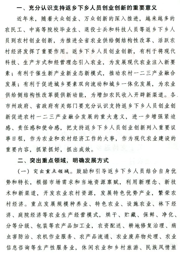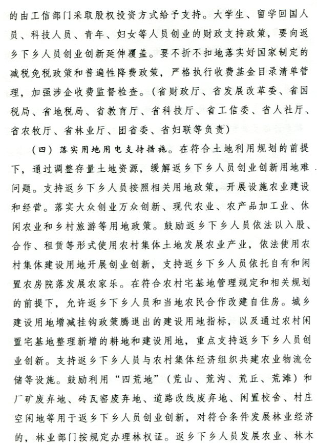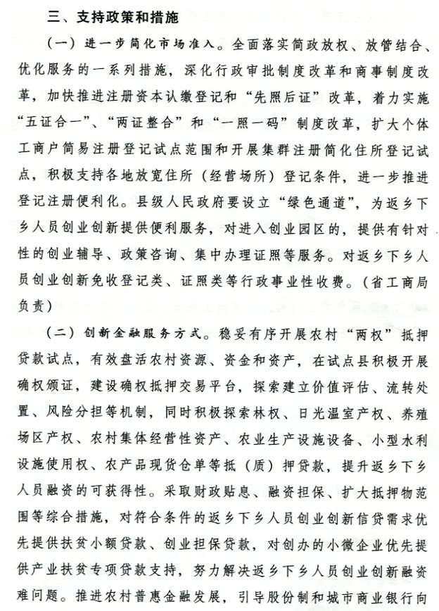 转发省政府办公厅关于支持返乡下乡人员